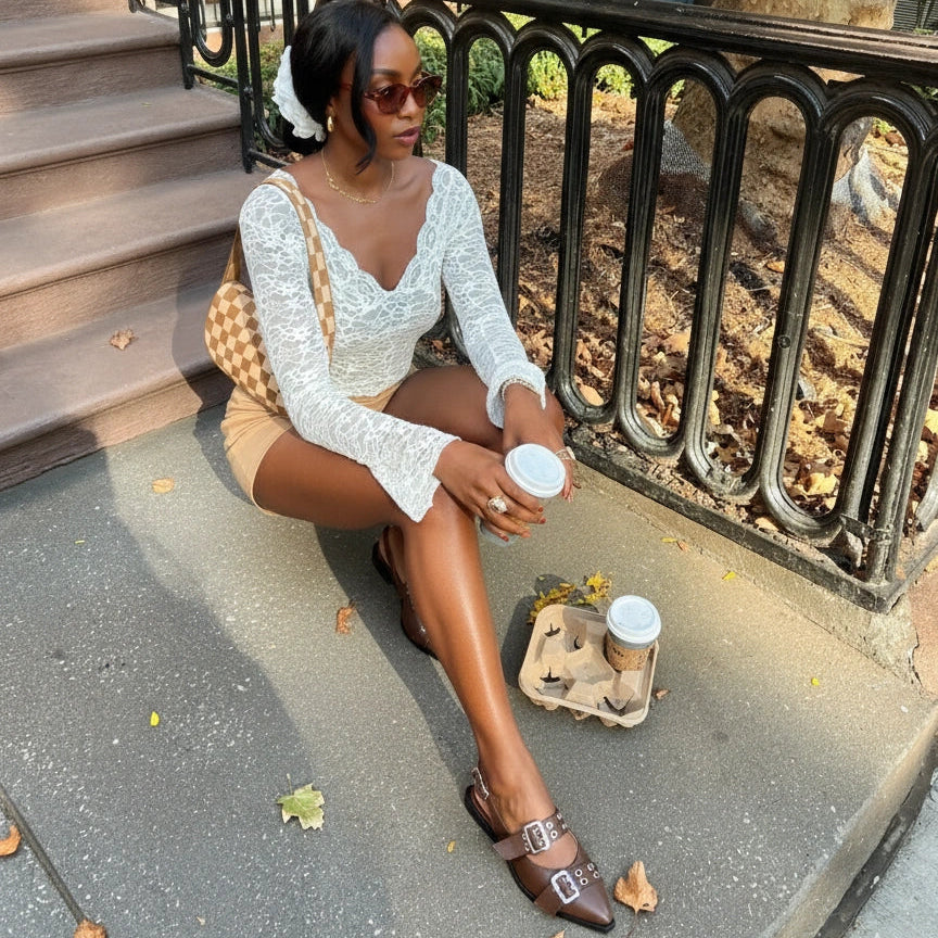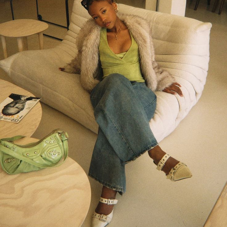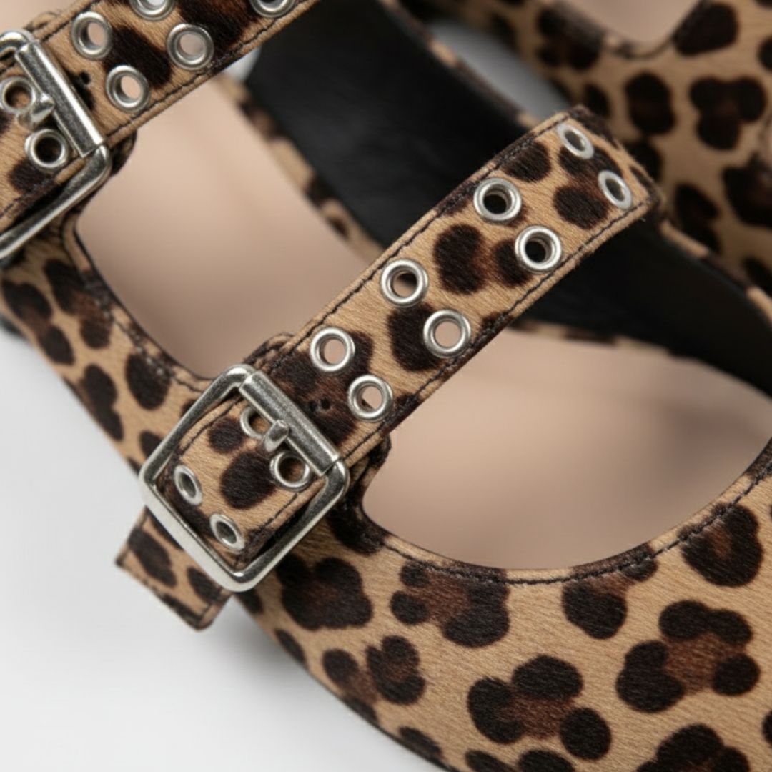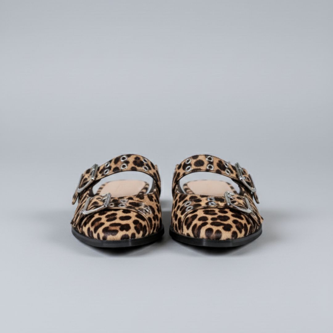 Estas baletas puntudas fusionan la feminidad clásica con una vibra moderna y atrevida. Su diseño estructurado y los herrajes metálicos crean un equilibrio perfecto entre sutileza y carácter, elevando cualquier look sin esfuerzo.