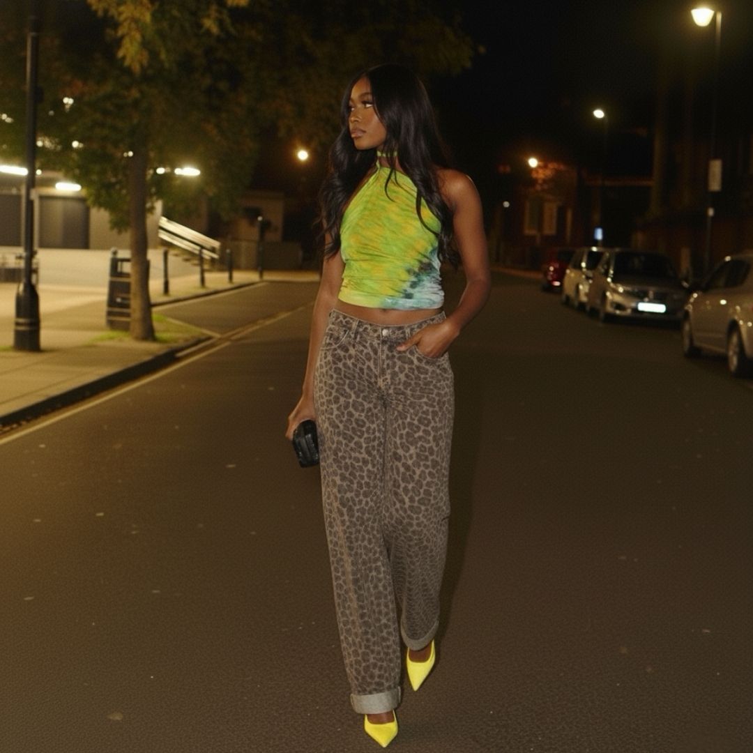 El estampado tipo leopardo aporta un toque audaz y versátil que combina fácilmente con prendas neutras o tonos vibrantes.