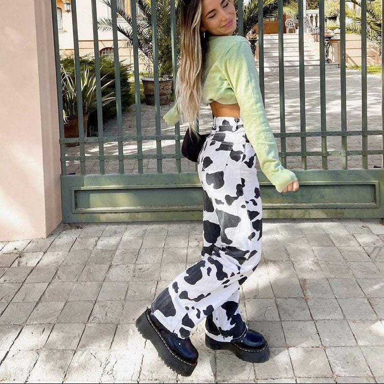 Pantalón Oversize Animal Print Vaca en Denim de Algodón