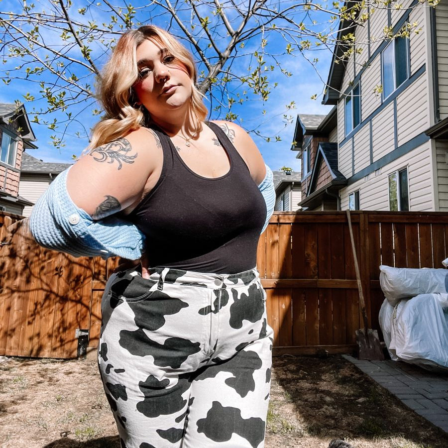 Este jean cow print lleva la energía del estilo urbano con un toque irreverente y femenino. Su estructura oversize equilibra comodidad y presencia, mientras su estampado en blanco y negro transforma cualquier outfit en una declaración de estilo.