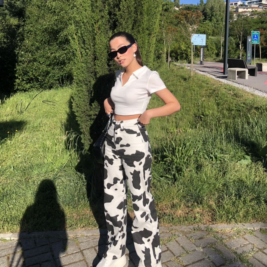 ¡No puedo superar estos jeans!🔥 Literalmente me los puse y me sentí otra. Ese estampado de vaca… uff, roba miradas por donde paso. Súper recomendados, de verdad.