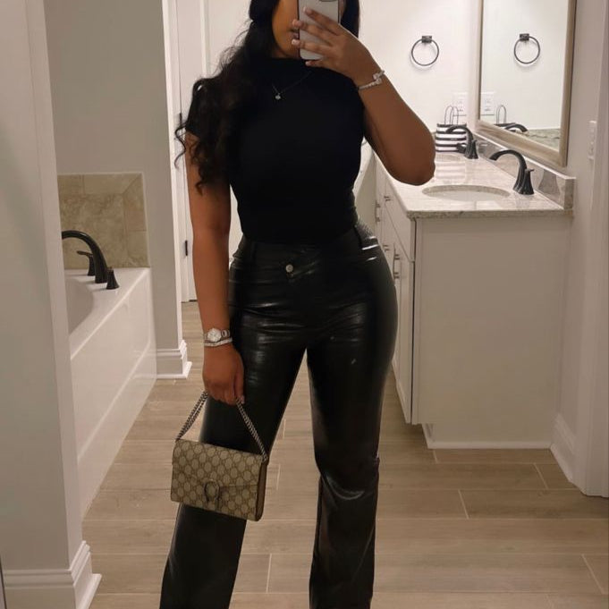 Este pantalón de cuerina suave abraza la figura sin rigidez, dejando que el movimiento hable con naturalidad. Su corte oversize y sus bolsillos utilitarios lo convierten en un clásico contemporáneo: fuerte, versátil y con una elegancia discreta.
